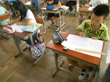 教室では,持ち帰った資料を参考にしながら早速下絵かきに挑戦です。