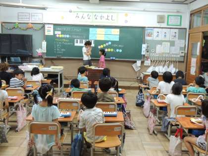 1年生は,音楽の授業で鍵盤ハーモニカの演奏の様子を参観していただきました。