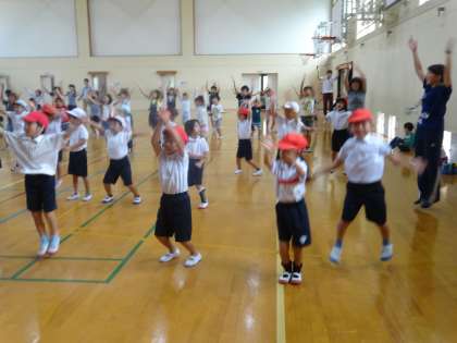 今日はその練習があり,子どもたちはアップテンポなリズムに飛び跳ねながらダンスをしていました。