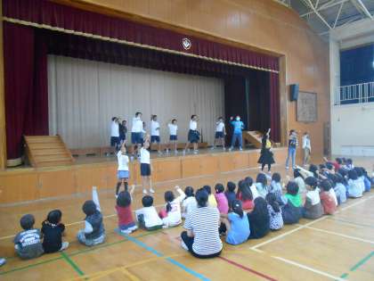 休み時間には,色別に集まって,応援練習に取り組んでいます。