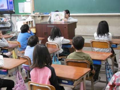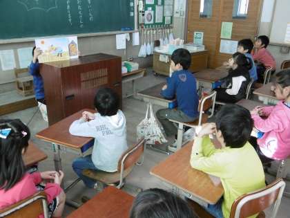 それぞれの教室で,子どもたちは静かに紙芝居を聞くことができました。