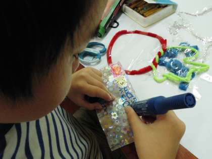 モールやキラキラシートを使ってお気に入りの作品づくりに取り組みました。