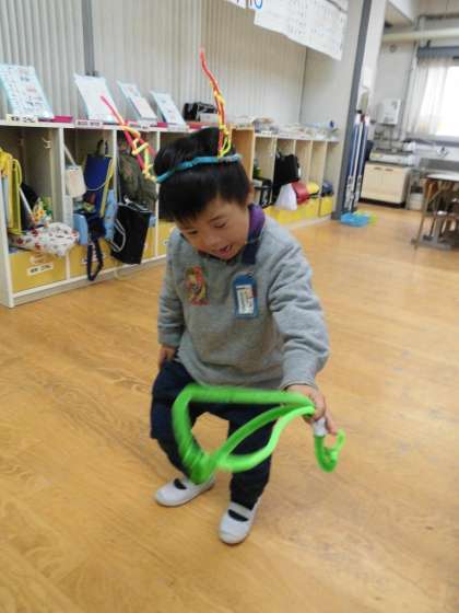 角を生やして金棒も作って,「おらー!」と大きな声で鬼になりきることができました。