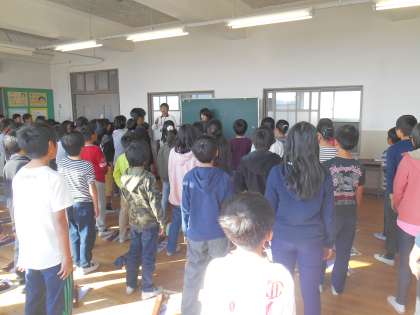 6年生の音楽でご指導いただいている丸田先生に,5年生の練習の様子をみていただきました。