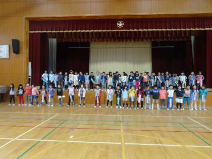 クラスでは揃えられても,広い体育館で学年みんなで音を揃えるのは難しいですね。