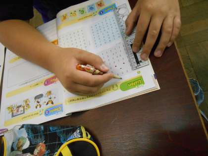 はじめにアルファベットの復習やLet’s Listenの点つなぎをしたりしました。