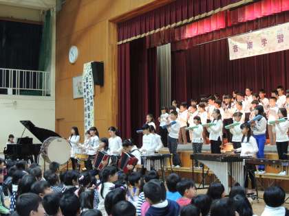 5年生は,「キリマンジャロ」の合奏と「つばさをだいて」の合唱を発表しました。
