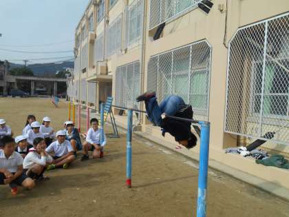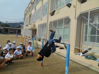 「何であんな姿勢よくできるんやろ?」「ぐるんぐるん回っててすごかった!」など,お友だちのまねをしてみようと頑張っていました。