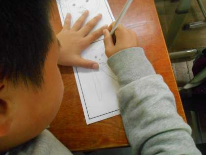 2文字目にかきたい文字を選び,単語を考えたり,イラストをかきこんだりしていました。