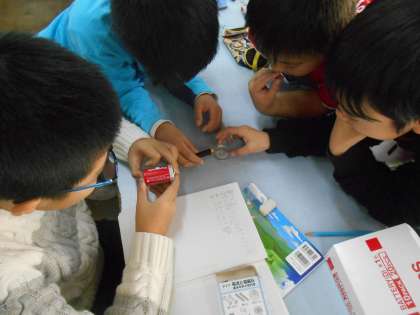 電磁石の極を変えるには,どうすればよいか考え,実際に試してみました。
