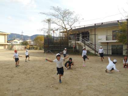 縄跳びでは,回数を決めていろいろな技に挑戦です。