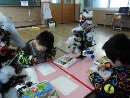 お世話になった人へのクリスマスカード用の絵も描いて,ご満悦の表情を見せる2人でした。カードは出来上がり次第,お礼と共にお世話になった方へ渡しに行く予定です。