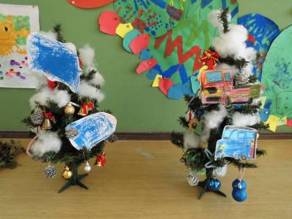 あと,星ではなく,最近は2人とも大好きな車の絵が主役のツリーとなりました。