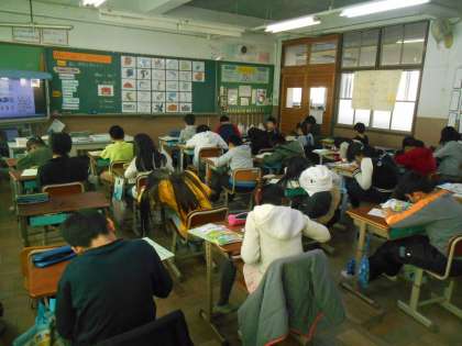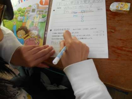 外国語活動の授業の最後には,振り返りカードに記入します。