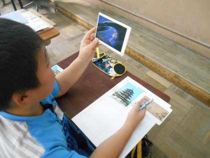 4枚のアートカードをランダムに選んで,それぞれのカードにかかれたものから想像を広げ,ストーリーを書き込みました。