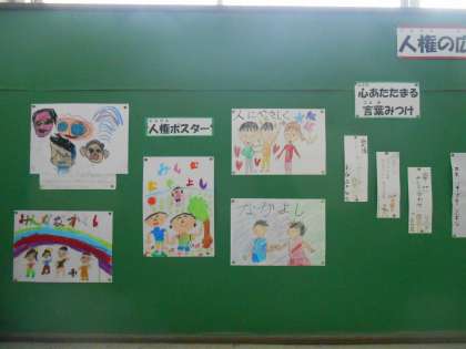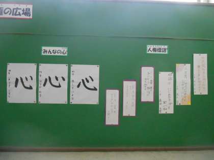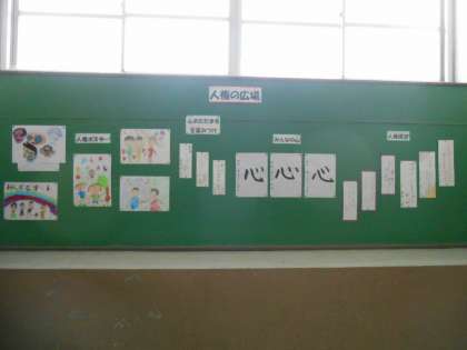 校内にある各学年の掲示板に,人権に関する取組が掲示されています。