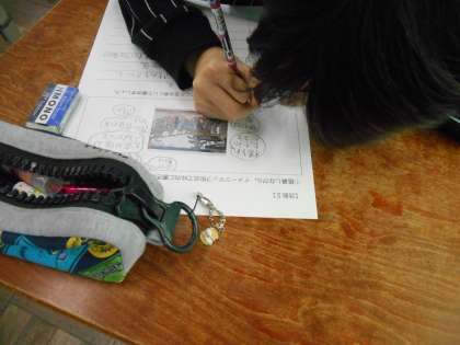 ワークシートに浮世絵をはりつけて,イメージマップをかいたり,思ったこと・感じたことを文に表しました。