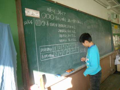 少ない方から順に,表を使って調べていくと,2倍ずつになることが分かりました。