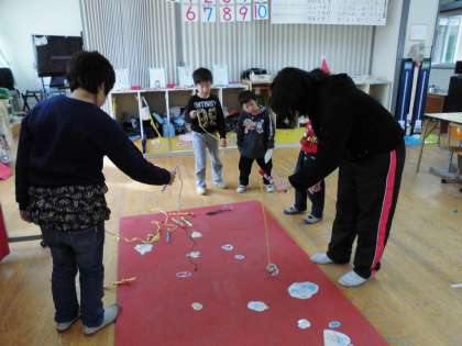 うどんをゆでている間に,魚釣りならぬ「妖怪つり」をしました。