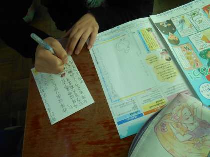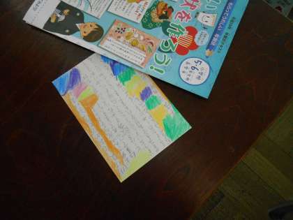 宛て名はおうちで書いてきていたので,裏面にイラストや文を添えました。