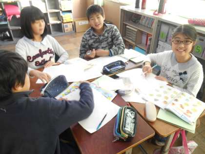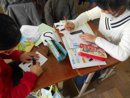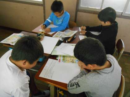 授業で取り扱ったゲームの中から,自分たちが頑張りたいクイズを決め,画用紙などを使って準備を始めています。