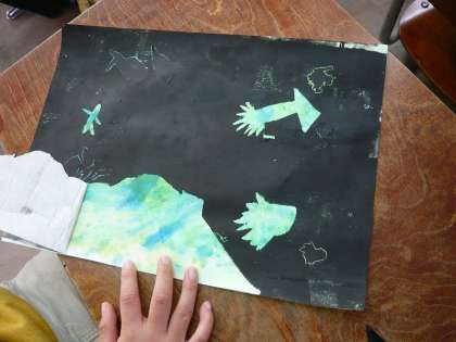 シールを剥がして見えてきた色に,子どもたちは大興奮です。