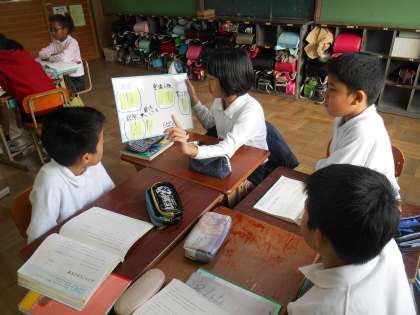 お友だちと付箋に書いた特徴を話し合ったり,他の班の意見を聞きに回って見たりしました。