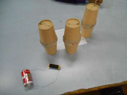 電磁石を使ったシーソーや魚釣りゲームなど,電磁石の性質を生かしたオリジナルのおもちゃがたくさん見られ,「これどうやって遊ぶん?」「やり方教えて!」など,大いに盛り上がりました。