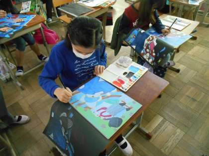表したい感じになるよう,彫り方や色の重ね方を工夫しながら,2枚目の完成に向けて,頑張って取り組んでいます。