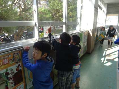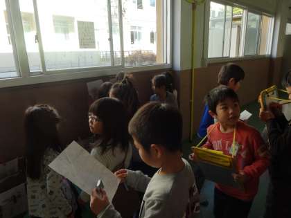 普段は行けないお兄さんやお姉さんたちの教室の前へ行けることに,「やったあ!」と声を弾ませていた子どもたち。
