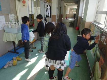 保健委員会の活動で,学校内をまわるクイズラリーが行われています。