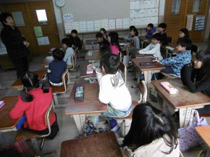 おなかの中の赤ちゃんの大きさなどを知った子どもたちは,「えー!!」と驚きながらも真剣に授業を受けることができていました。