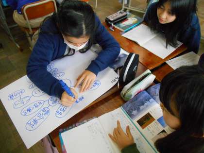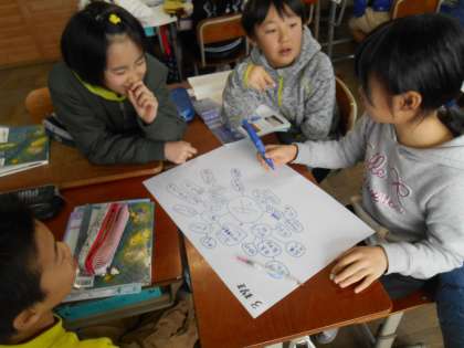 清少納言の随筆「枕草子」や冬を表す言葉を読み,冬らしいと感じることや冬の好きなところについてイメージマップを作りました。