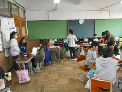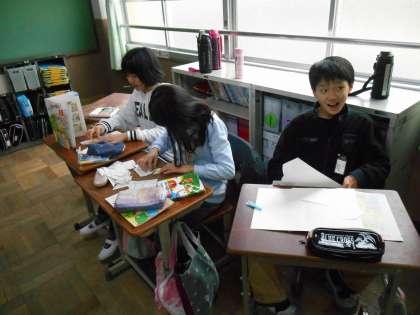 チャンツ等をして復習した後,来週のクイズ大会に向けて,グループに分かれて,作ったクイズの発表の仕方を練習しました。