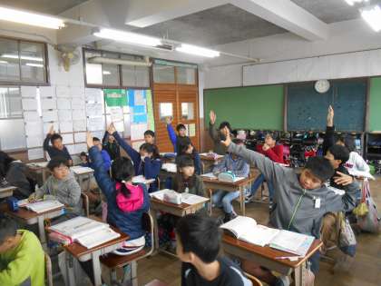 「割合」の単元は難しい問題が多く,つまづきやすいところではありますが,相互指名をしながら,元気いっぱい学習に取り組んでいます。