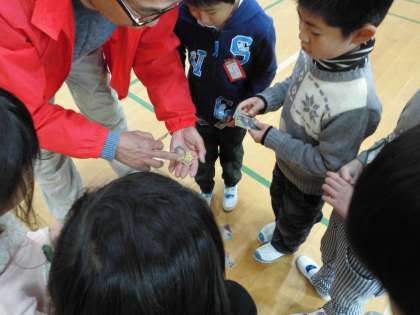 日本の昔ながらの遊びの楽しさを教わり,大人も夢中になりました。