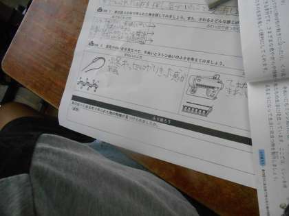 その後,縫い目を比較し,手縫いとミシン縫いのよさについて考えました。