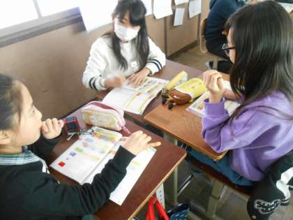 3カ国の学校生活についての英語を聞き取り,外国の小学校と自分たちの学校生活の共通点や相違点に気付くことができました。