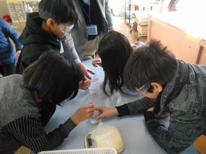 ホウ酸を5グラムずつとかし,お湯で温めながら混ぜる実験と,水を追加する実験を行いました。