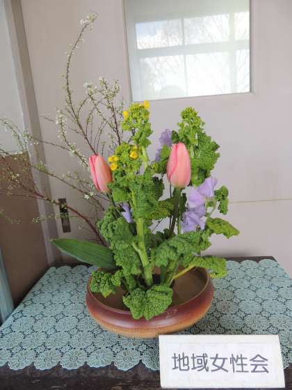 今月も鏡山地域女性会の方々にお花を生けていただきました。