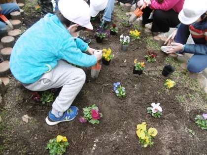 自分たちで穴を掘り,根っこを整え,きれいに整地しています。