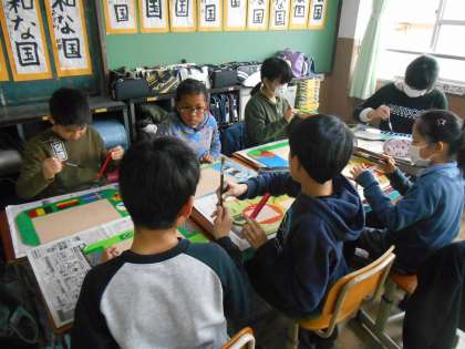 色を着け,1日乾燥させたら,ニスでつやつやに仕上げていきます。