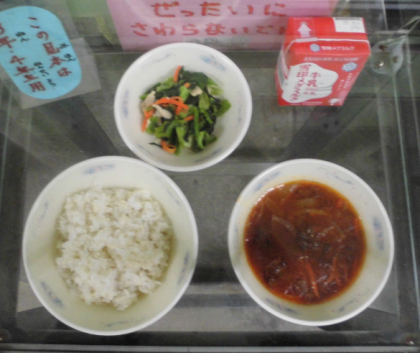 2月9日(木)の給食:ハッシュドビーフ・小松菜のソテー