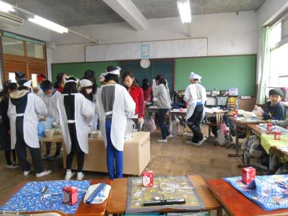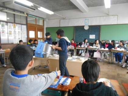 給食カレンダーを見て,今日は円形にしてわいわい食べていました。