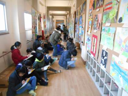 本校北校舎1階コミュニティープラザ前に,山科支部巡回展の作品が掲示されています。