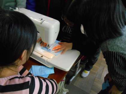 ミシン用練習布を使って,直線縫いから順に練習していきます。