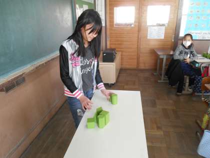 角柱や円柱の面の形や辺の数などを調べ,角柱や円柱の特徴について考えました。