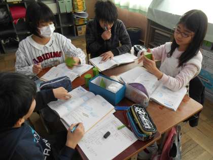 柱体の実物を実際に見たり触れたりしながら,底面や側面,曲面はどこか考えることができました。