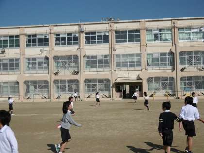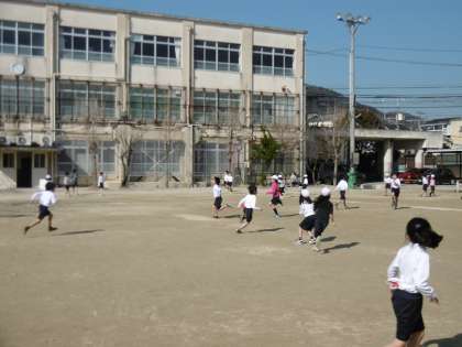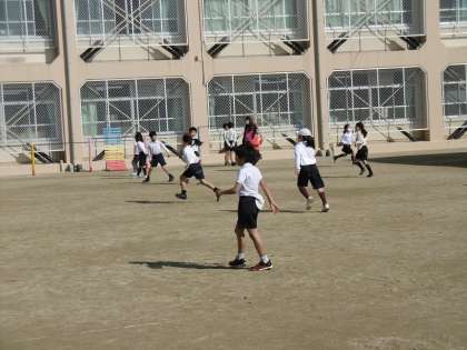 「しっぽ取り」などの新しい遊びも体験して,子どもたちは元気に運動場を走り回りました。