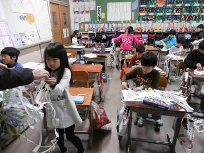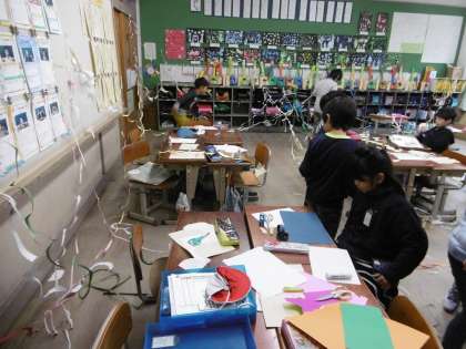 はさみを上手に使って渦巻き状に切ったり,細く長く切ったりと工夫も盛りだくさん!